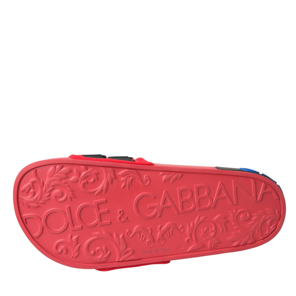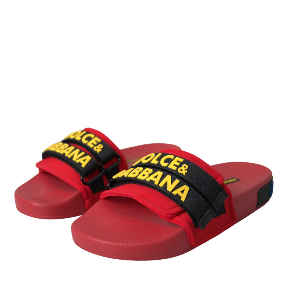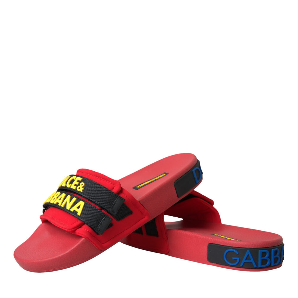 Red Black Logo Beachwear Flats Sandals Shoes