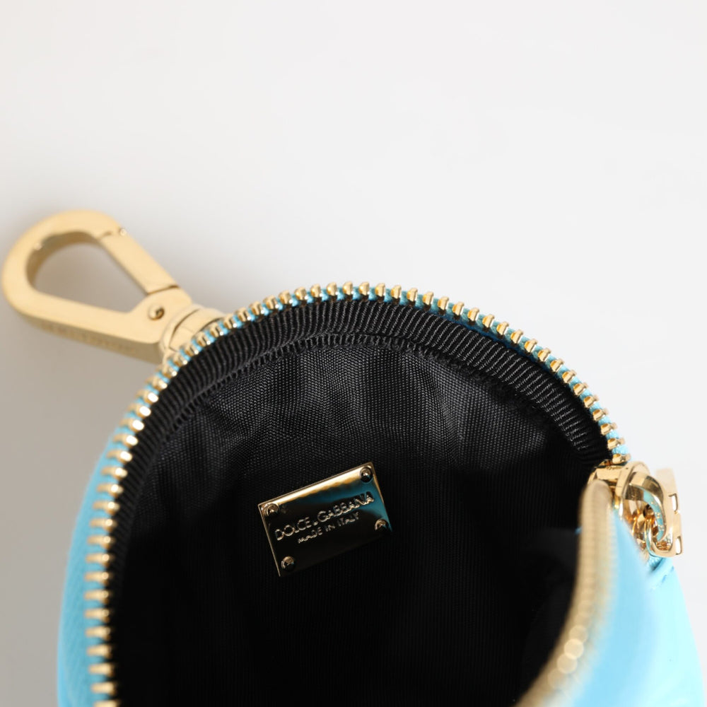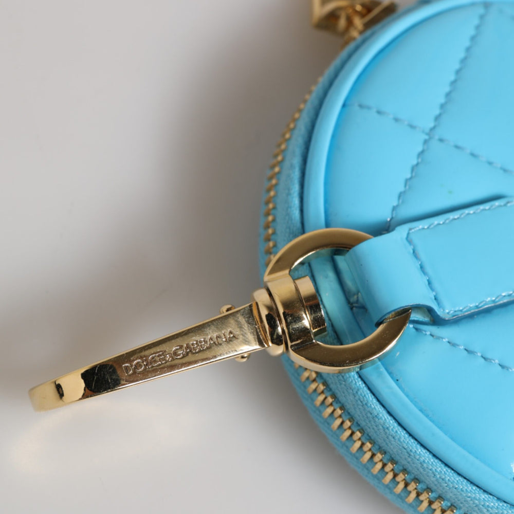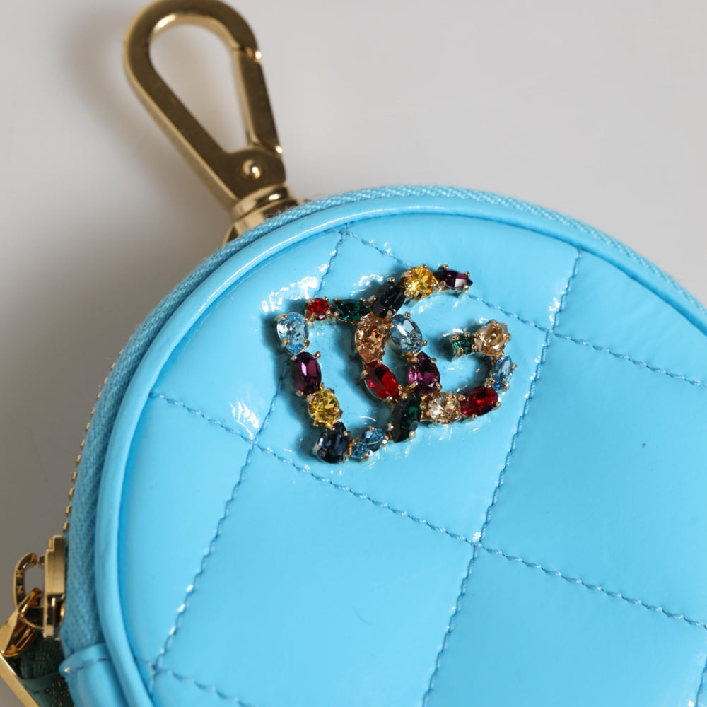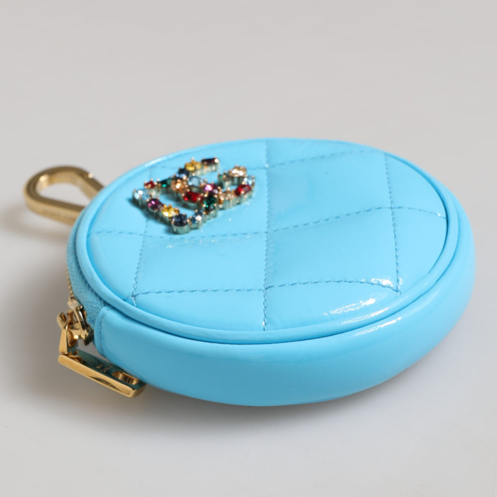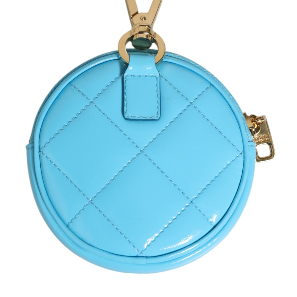 Azure Blue Leather Round Coin Purse Keychain Crystal Logo Wallet