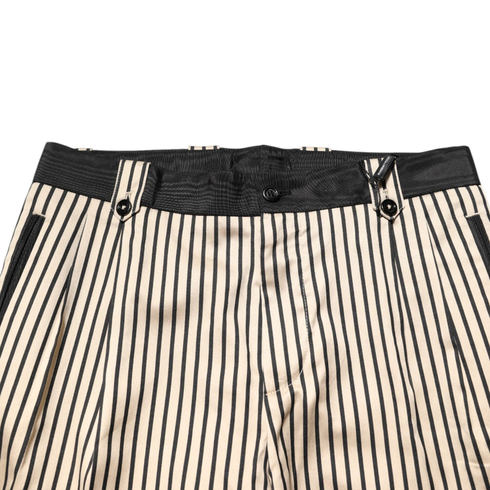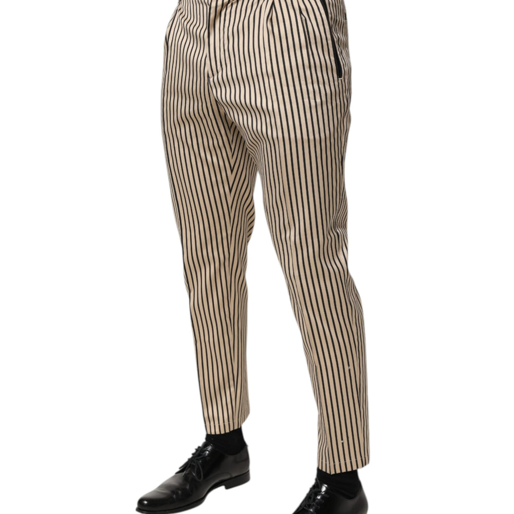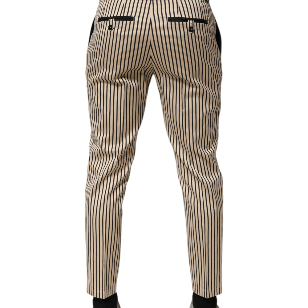 Beige Black Striped Cotton Slim Fit Trousers Pants