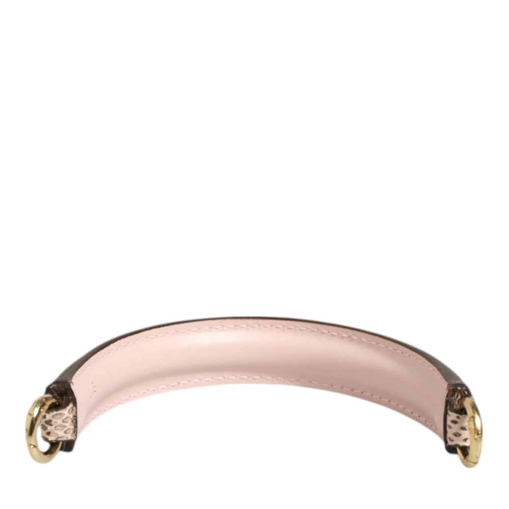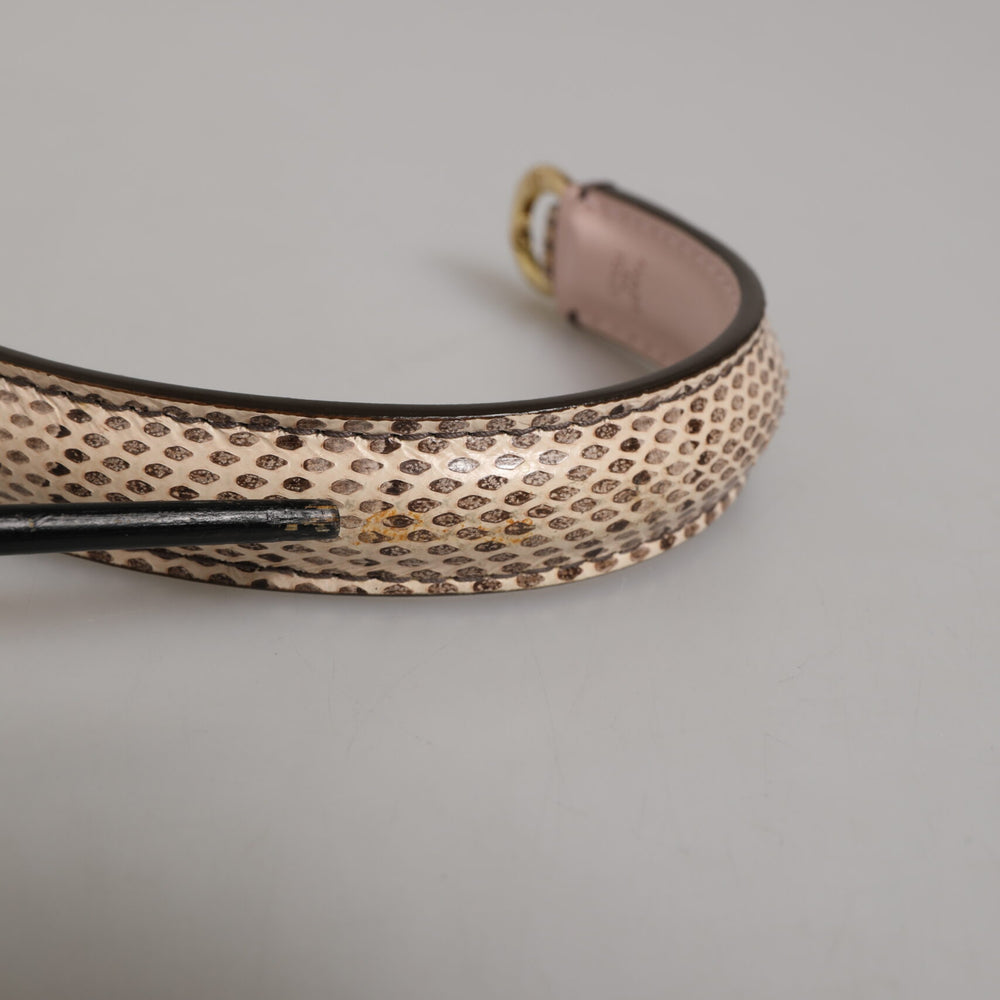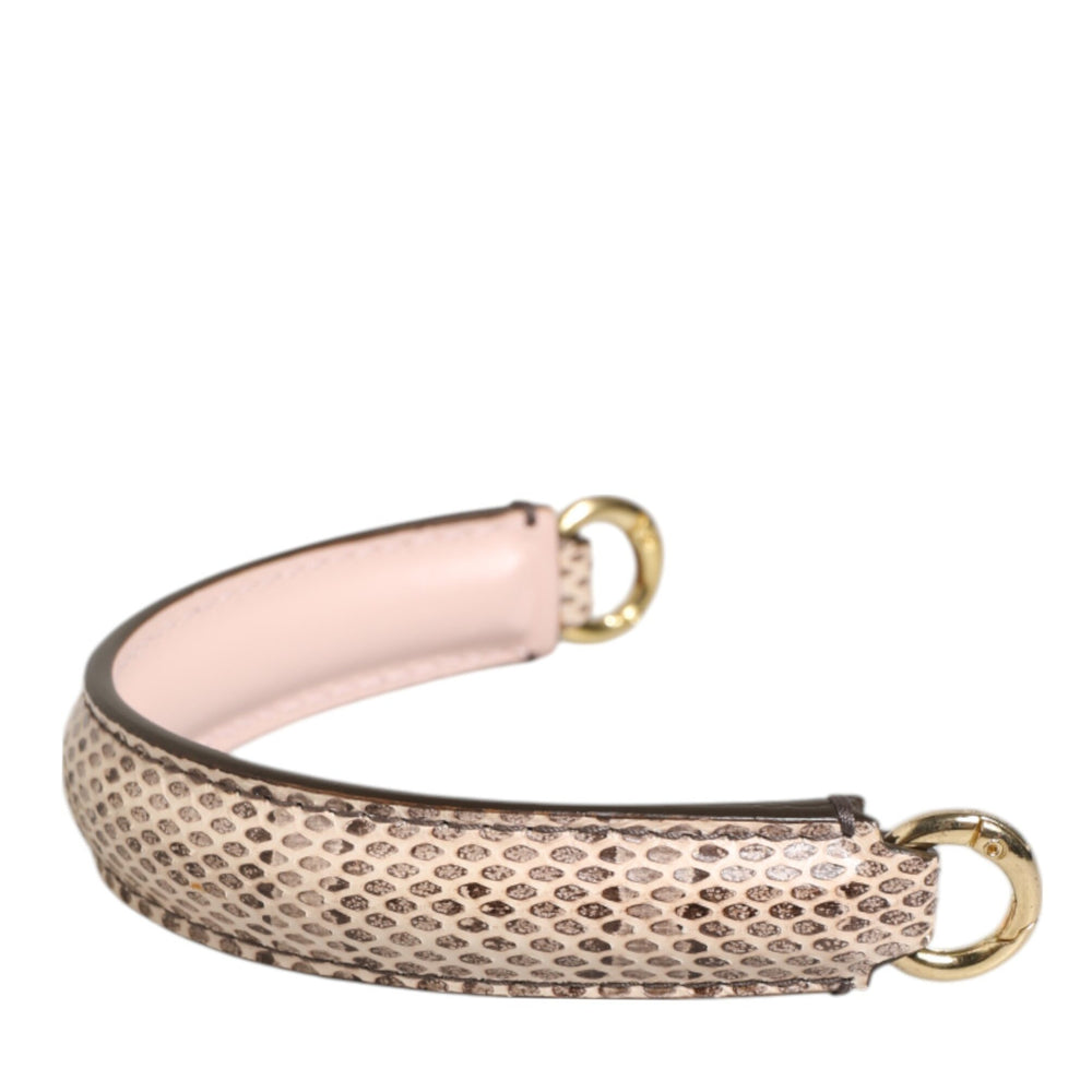 Beige Brown Snakeskin Leather Gold Ring Shoulder Strap