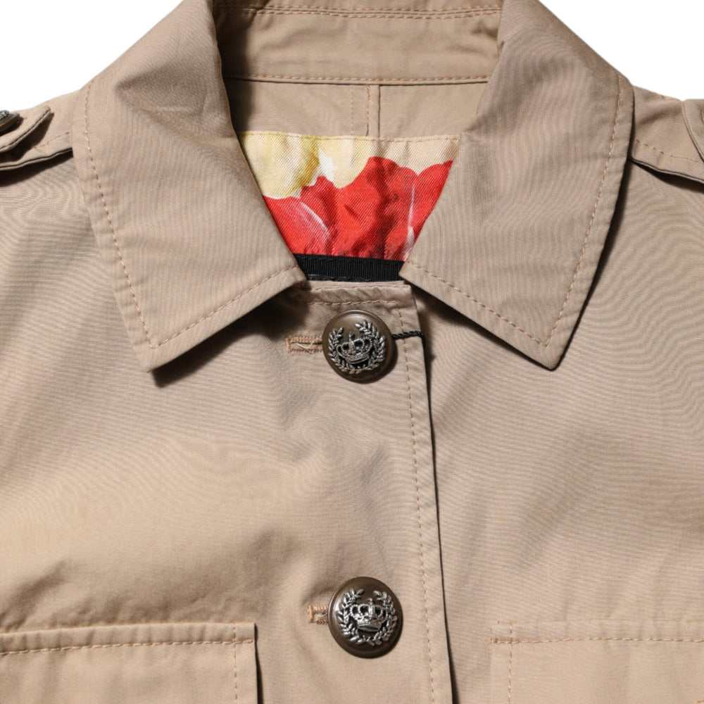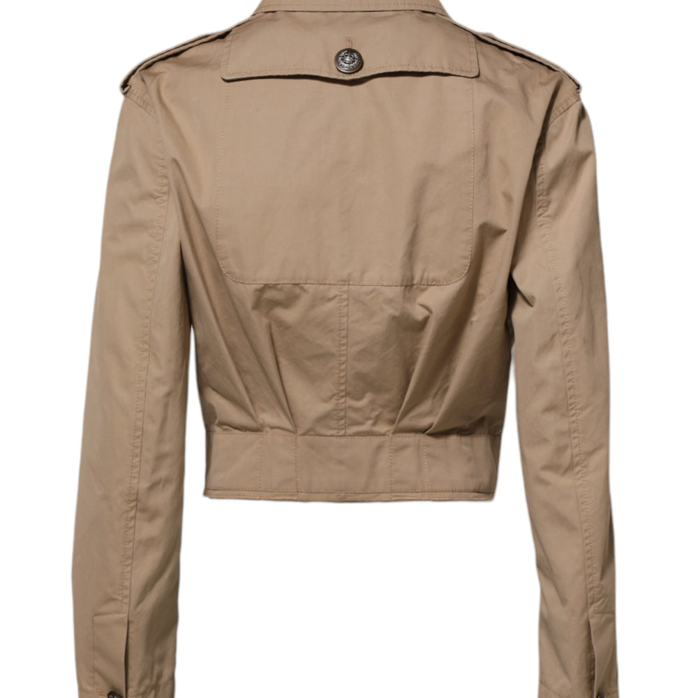 Gorgeous brand new, 100% Authentic Dolce & Gabbana cropped jacket. Tailored from beige cotton, it features a fitted silhouette with a classic button-up front, blending timeless elegance with modern edge. Perfect for layering over dresses or pairing with high-waisted trousers, this versatile piece adds effortless sophistication to any look.