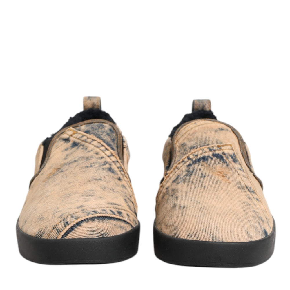 Beige Cotton Low Top Slip On Sneakers Shoes