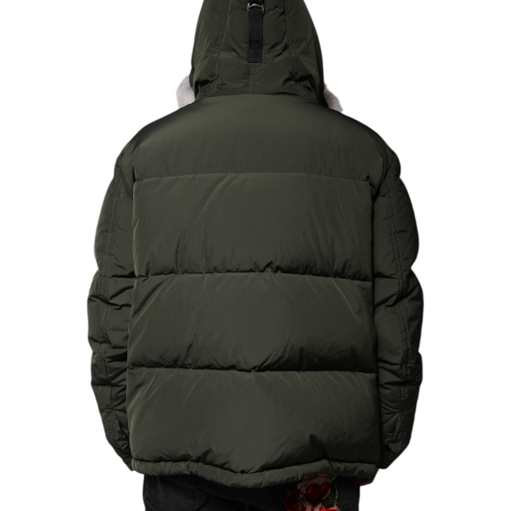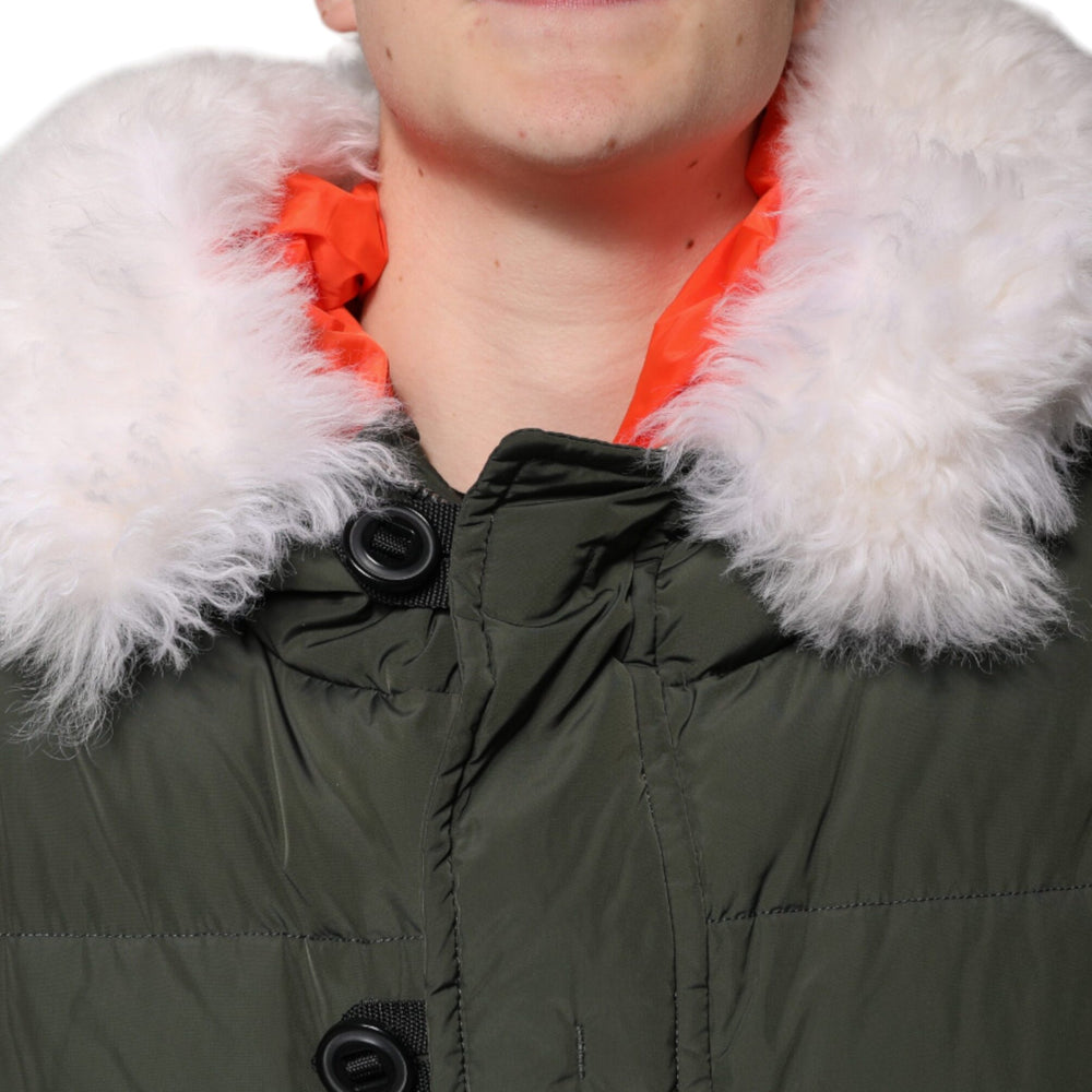 Green Hooded Long Sleeves Fur Shearling Jacket